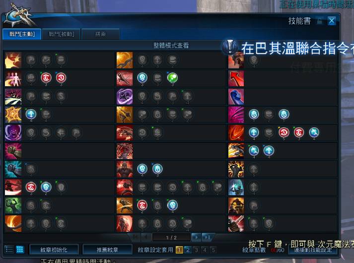 | 必殺意志,紋章全點,爆發技能,使用後大部分技能冷卻減半,部分技能額外強化,武器使用雙憤怒的請於王憤怒後再使用此技能。 |